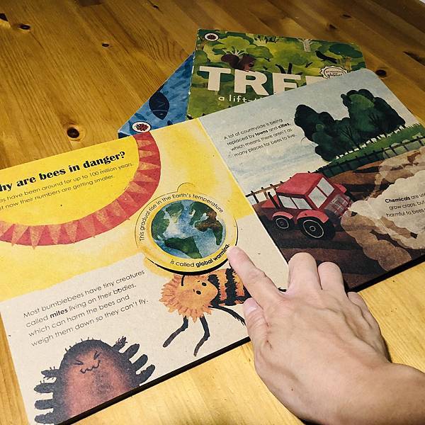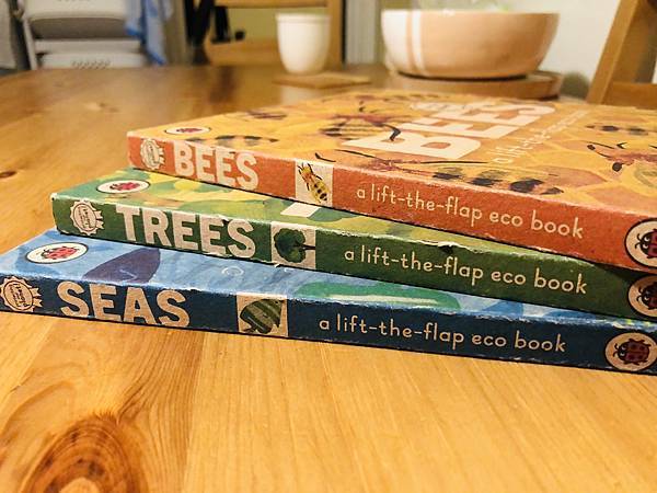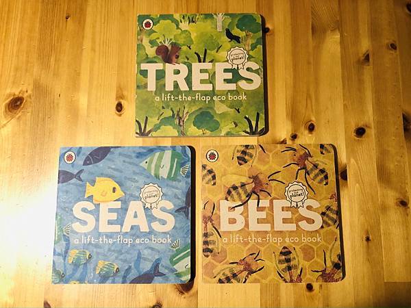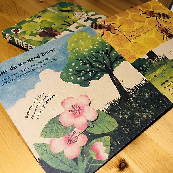 這次分享的三本分別是以蜜蜂(Ladybird Eco Books: Bees )、樹木(Ladybird Eco Books: Trees)及海洋(Ladybird Eco Books: Seas)為主題,除了從顏色可以很快速的辨識主題的差異,書的側邊也有很可愛的小插圖方便辨識!