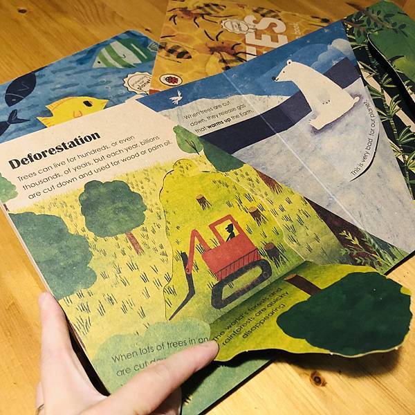 今天分享的 Ladybird Eco Book 系列,是圍繞著環境為主軸的系列硬頁翻翻書。首先從材質上就可以看出他的不一樣,以再生紙製成,不管是色澤或是手感都相當溫潤,雖然不像一般繪本那樣鮮豔搶眼,但是在整體呈現上多了種說不出的優雅跟柔和。帶點童趣的插畫風格在視覺上真的是一大享受,邏輯清晰敘事架構更是令人相當讚賞。我個人私心覺得是非常值得收藏的一系列!!